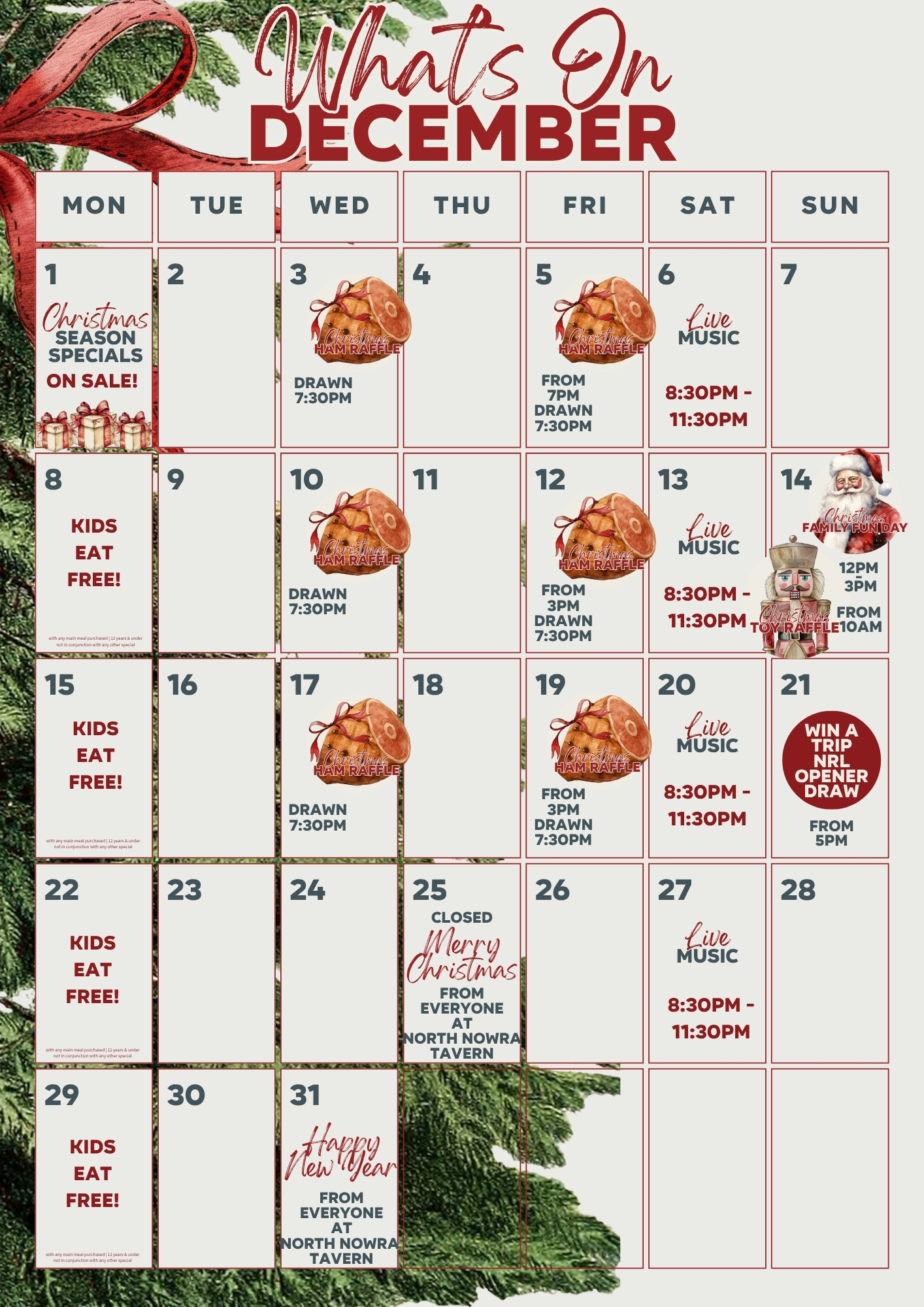 North Nowra Tavern is open seven days a week, offering a family friendly pub with function spaces and catering for all celebrations, your favourite sports on the big screens, delicious drinks and fantastic food!